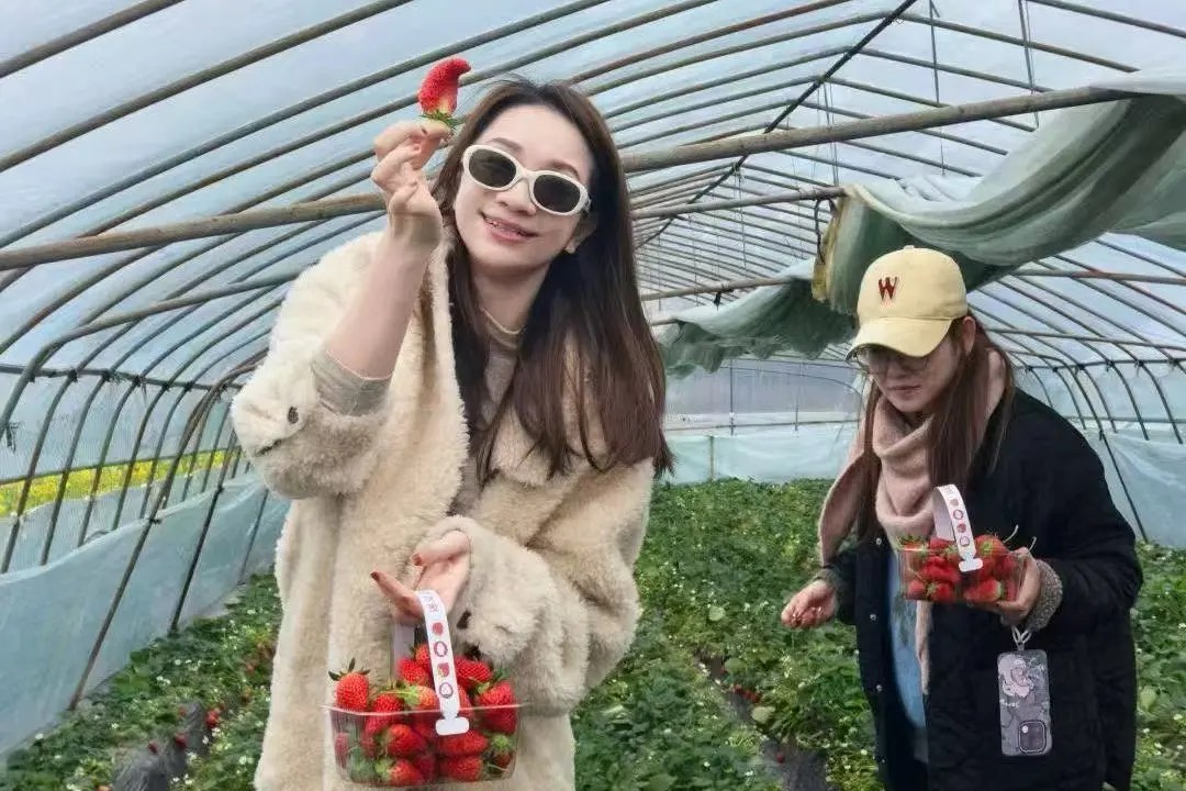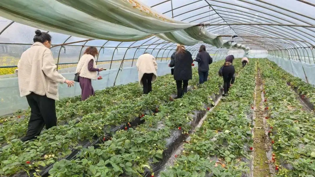 随后,大家走进草莓大棚和野菜地,亲手采摘新鲜草莓,挖掘春天的馈赠。田间地头,大家一边劳动一边交流,感受着大自然的生机与美好。